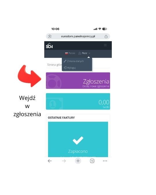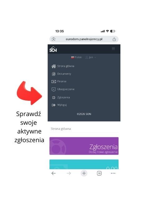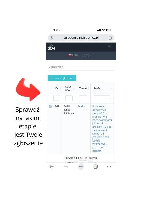 → zgłosić usterkę lub inny problem na mieszkaniu